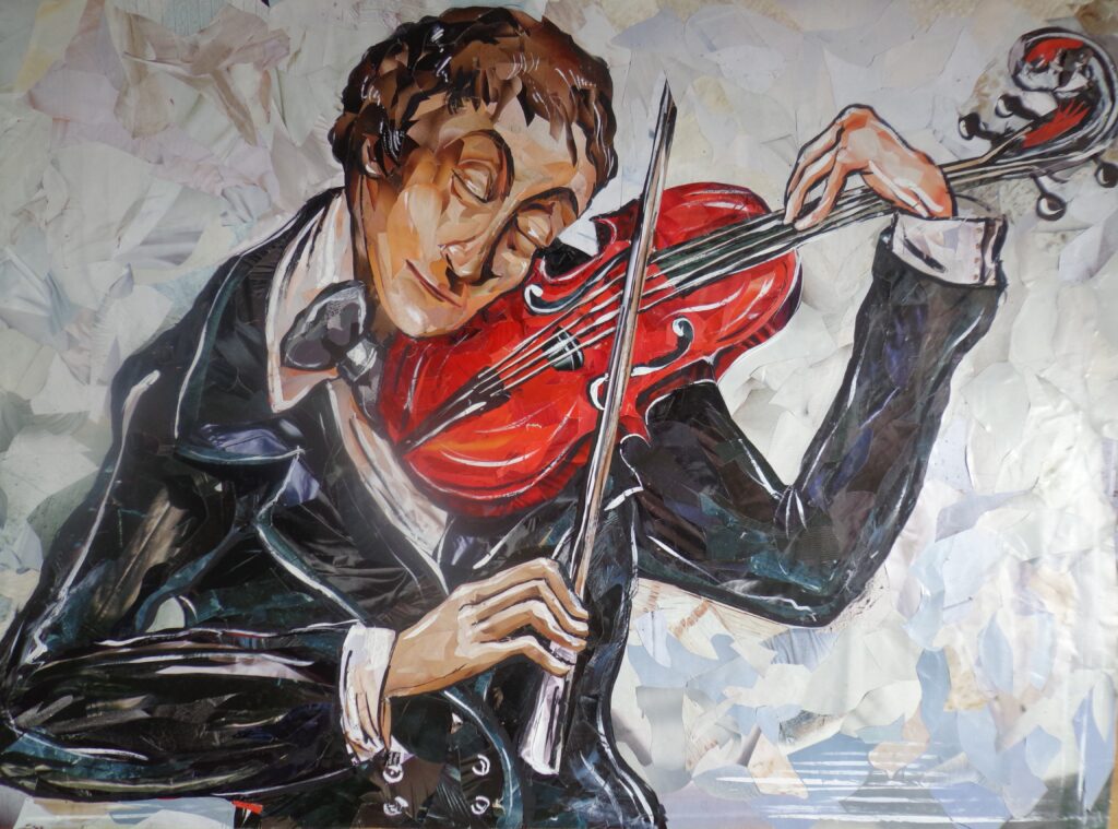 „მევიოლინე“, 61x86სმ, ქაღ. მოზაიკური კოლაჟი, გუაში, 2006