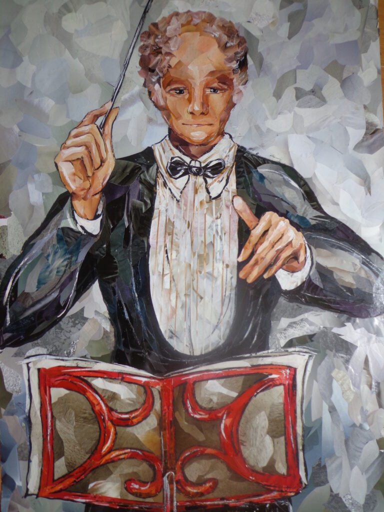 „დირიჟორი“, 86x61სმ, ქაღ. მოზაიკური კოლაჟი, გუაში, 2006